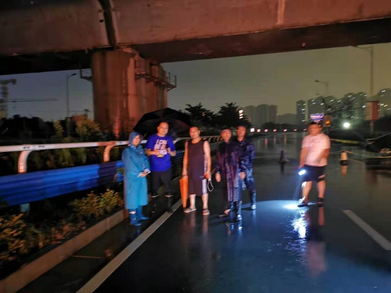 3.党工委委员单涛带领包村人员到柴郭村2号地康桥售楼部和工地查看积水点情况,组织开展防汛工作