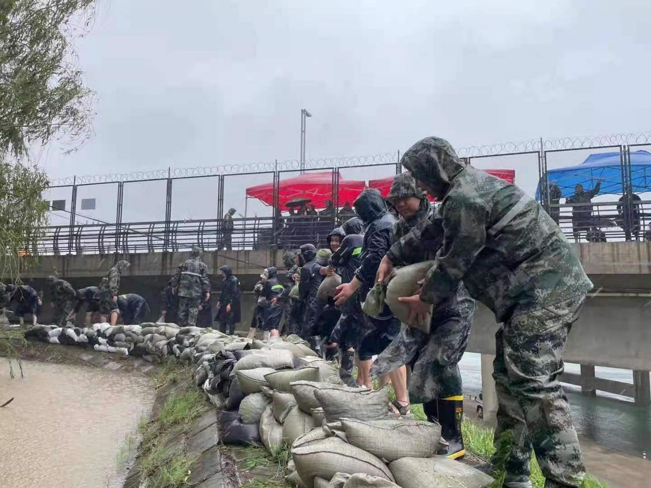 4.人大工委主任陈兵在南四环南水北调大桥调度防汛工作,组织基干民兵开展防汛作业。